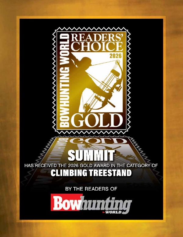 Summit Treestands is excited to share that we've been voted the Gold winner of the 2026 Bowhunting World Readers' Choice Award in the Climbing Treestand category - a recognition we're proud to earn once again. This honor highlights Summit's longstanding reputation for delivering safe, reliable, and innovative treestand solutions trusted by bowhunters nationwide.