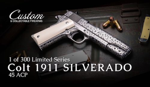 Custom & Collectable Firearms presents the Colt 1911 “Silverado.” A bold, limited-edition series chambered in .45 ACP. With only 300 sequentially numbered pieces, the “Silverado” stands as a symbol of rarity and refinement, created for collectors who value artistry. Every detail tells a story with intricate antique engraving flowing seamlessly across the slide, frame, and controls, captivating the eye with precision that honors timeless craftsmanship. Complemented with elegant white grips, the “Silverado” is a statement of class, designed to be admired, revered, and passed down for generations.