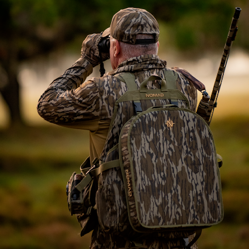 The quick deploying and removable 3-inch thick seat is ideal for long, or quick, sits while turkeys are working in hunters’ direction. NOMAD designers know that a spacious game pouch for packing out a successful harvest is a must, along with an array of pockets for go-to turkey calls.