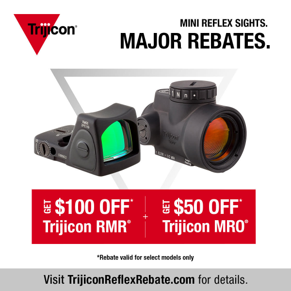 Trijicon Inc., global provider of innovative aiming solutions to military, law enforcement, and individual consumers, is excited to offer its first-ever rebate program for select RMR and MRO reflex sights. Beginning October 1 and running through December 31, 2023, a $100 consumer rebate will be available for RMR Automatic LED, RMR Adjustable LED, and Dual Defense Kits. In addition, Trijicon is offering a $50 consumer rebate on the Trijicon MRO and MRO Patrol model reflex sights. The MRO HD is not included in the rebate program.