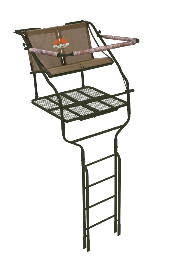 Millennium enables hunters to share their passion with the L220 Double Ladder Stand. The steelTOUGH construction provides rock-solid stability and longevity, while the fold-up comfortMAX seats provide unsurpassed comfort for those long sit days. The large 40” X 32” platform delivers ample space for two hunters and their gear. Millennium paired the stand with an adjustable shooting rail and footrest to accommodate all hunters, large and small. This season, share the excitement of the hunt in a Millennium L220 Double Ladder Stand.
