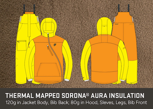 Externally, both the jacket and pants are constructed of an ultra-quiet brushed fleece shell with a DWR treatment to shed light moisture. Inside, a warm brushed fleece core pairs with smooth polyester-lined sleeves for easy layering without added bulk. Likewise, the bibs are polyester-lined for easy on and off, as well as layering.