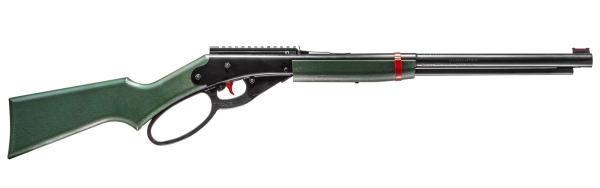 The new Woodland Trail lever action BB gun features a large loop lever, fiber optic front sight and adjustable rear sight, plus a Picatinny rail for adding optics. It also features these new looks – forest green buttstock and forearm with a red barrel band and trigger. Hello handsome!