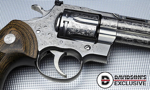 The re-introduction of the iconic Colt Python brought a singular focus to Davidson’s purchasing team – make a special edition only available through Davidson’s. Working in conjunction with Automated Finishing, Davidson’s was able to design an exquisite engraved version of the 6” barreled model of the new Python.