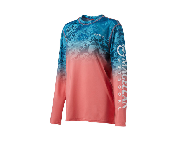 The Magellan Outdoors Women's Realtree Fish WAV3 Ombre Fishing Shirt looks great and performs even better during your time on the water. Crafted with polyester and elastane material, this shirt offers four-way stretch for freedom of movement, and the moisture-wicking technology will help keep you cool and dry when the action heats up. UPF 50 shields skin from the sun's harsh rays.
